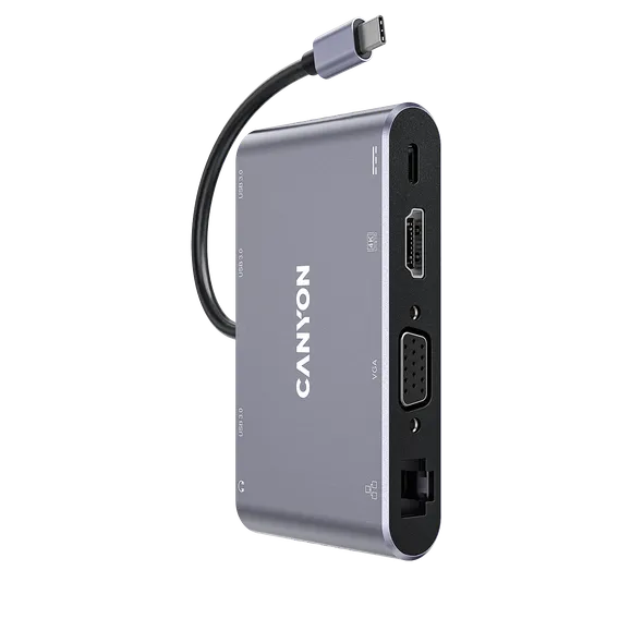 El hub DS-14 convierte un puerto USB-C en ocho conectores versátiles. Podrás conectar el monitor a través del puerto HDMI o VGA. Hay un mini-jack para auriculares o altavoces. Tres puertos USB-A 3.0 te permiten conectar tres accesorios periféricos a la vez de manera conveniente. El puerto de carga USB-C PD de hasta 100W te permite cargar tu dispositivo conectado a la velocidad óptima. Puedes conectarte directamente a la red a través de Gigabit Ethernet usando el hub. La carcasa de aluminio ligera y duradera ayuda a mantener la calidad de la señal. “Plug and Play“: conecta el hub y trabaja sin instalar software adicional. El hub ocupará un espacio mínimo en tu bolsa debido a su tamaño compacto. ¡La combinación perfecta de tamaño y funcionalidad!