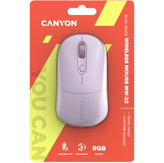 Este Canyon MW-22 es un ratón compacto con muchos ases en la manga. Es inalámbrico en modo dual: puedes conectarlo mediante Bluetooth 5.0 o dongle USB de 2,4 GHz, así que elige la conexión que mejor se adapte a tus necesidades. Bajo el capó, tenemos un sensor óptico de ajuste DPI variable hasta 1600. La batería es recargable y tiene una duración bastante larga gracias a su capacidad de 650mAh y al modo inteligente de ahorro de energía. También hay una retroiluminación RGB, en la que puedes elegir entre 15 modos o apagarla por completo para conseguir aún más longevidad. Cuando necesite recargarlo, este ratón ofrece un puerto de carga de tipo C, y tenemos el cable de 80 cm incluido en el paquete. Los cuatro botones están garantizados para soportar al menos 3 millones de clics, así que no seas tímido y haz clic en lo que quieras. Todo ello en 6 colores pastel: un toque de frescura para su entorno de trabajo. Deje descansar a su viejo ratón: es hora de destacar.