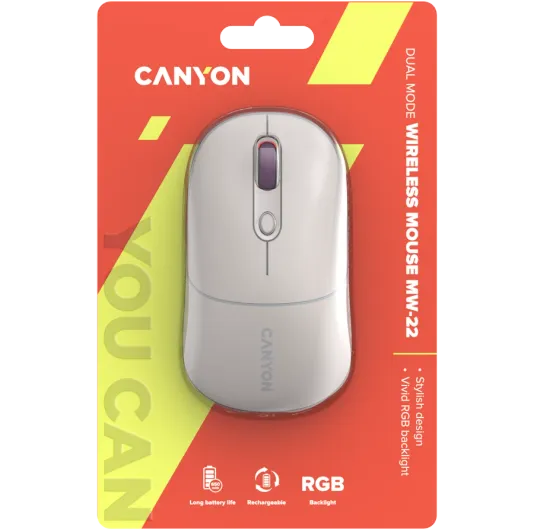 Este Canyon MW-22 es un ratón compacto con muchos ases en la manga. Es inalámbrico en modo dual: puedes conectarlo mediante Bluetooth 5.0 o dongle USB de 2,4 GHz, así que elige la conexión que mejor se adapte a tus necesidades. Bajo el capó, tenemos un sensor óptico de ajuste DPI variable hasta 1600. La batería es recargable y tiene una duración bastante larga gracias a su capacidad de 650mAh y al modo inteligente de ahorro de energía. También hay una retroiluminación RGB, en la que puedes elegir entre 15 modos o apagarla por completo para conseguir aún más longevidad. Cuando necesite recargarlo, este ratón ofrece un puerto de carga de tipo C, y tenemos el cable de 80 cm incluido en el paquete. Los cuatro botones están garantizados para soportar al menos 3 millones de clics, así que no seas tímido y haz clic en lo que quieras. Todo ello en 6 colores pastel: un toque de frescura para su entorno de trabajo. Deje descansar a su viejo ratón: es hora de destacar.