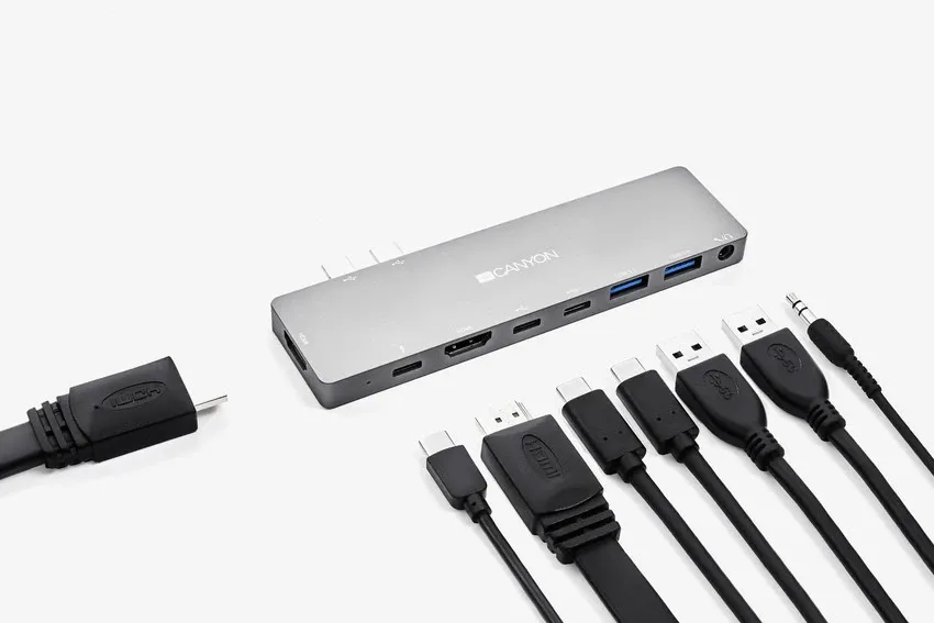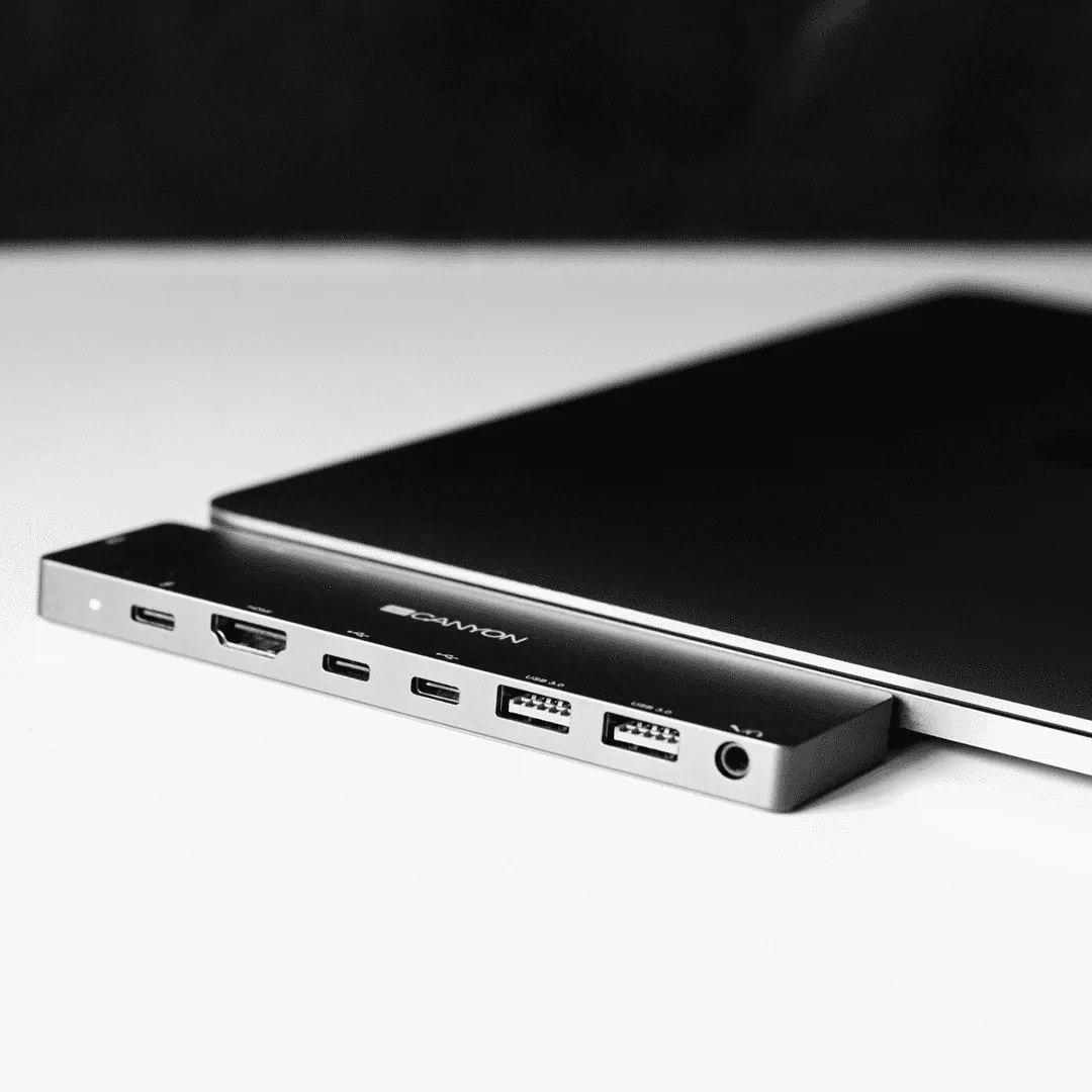 ¡Funciones máximas para tu MacBook! El puerto HDMI proporcionará transmisión de video de alta calidad en formato 4k. Un amplio conjunto de puertos USB permite transferir datos a la máxima velocidad para dispositivos con conectores como 3.0 USB-A, 2 USB-C para transferencia de datos, 1 USB Tipo C con Power Delivery 3.0. La interfaz de audio de 3,5 mm hace posible transmitir sonido de alta calidad si es necesario. Este hub de aluminio es el complemento perfecto para los últimos modelos de MacBook Pro / Air en términos de funcionalidad impresionante y diseño a juego. Conecta 2 monitores sin esfuerzos innecesarios y ponte a trabajar. ¡Amplía la funcionalidad de tu MacBook!